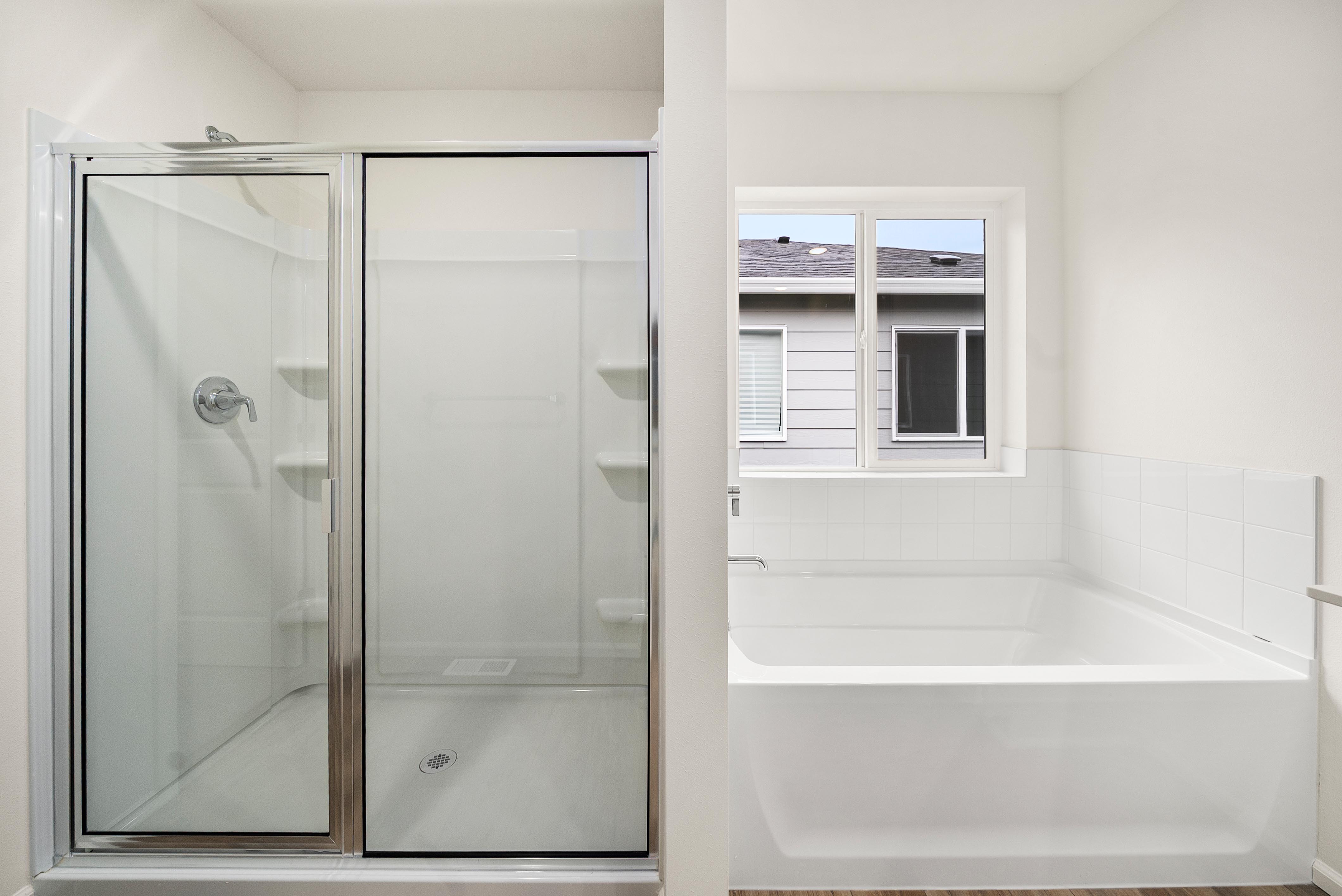 Additional included features like two-bay garages, 9’ ceilings on the main floor, luxury vinyl plank flooring, Ecobee® Premium Pro thermostats, and Schlage® electronic front door locks elevate everyday living. Select homesites also offer optional covered patios and open railings for added comfort and style.